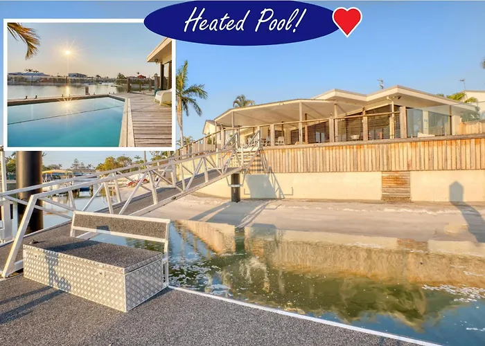 Doté d'un jacuzzi, Sunset Waters - Big Waterfront - Heated Pool - Point Position - 10M Pontoon - Views - 90Day Stays est situé à environ 2 km du Centre commercial Pacific Fair. Vous pourrez faire de windsurf, de la plongée avec tuba et de la plongée dans cette villa en front de mer, situé à environ 2 km de Funtime.